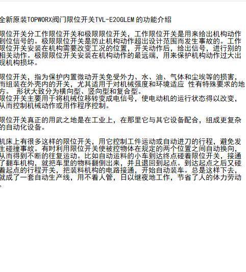 全新原装TOPWORX阀门限位开关TVL-E20GLEM 的功能介绍